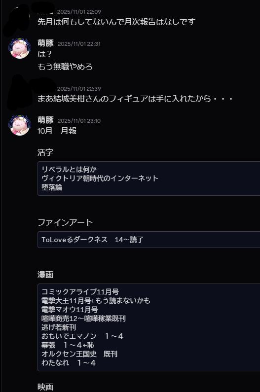 サブカル趣味に話を戻すと、去年の11月ぐらいから月ごとに触れたサブカルの記録を取るようになりました。